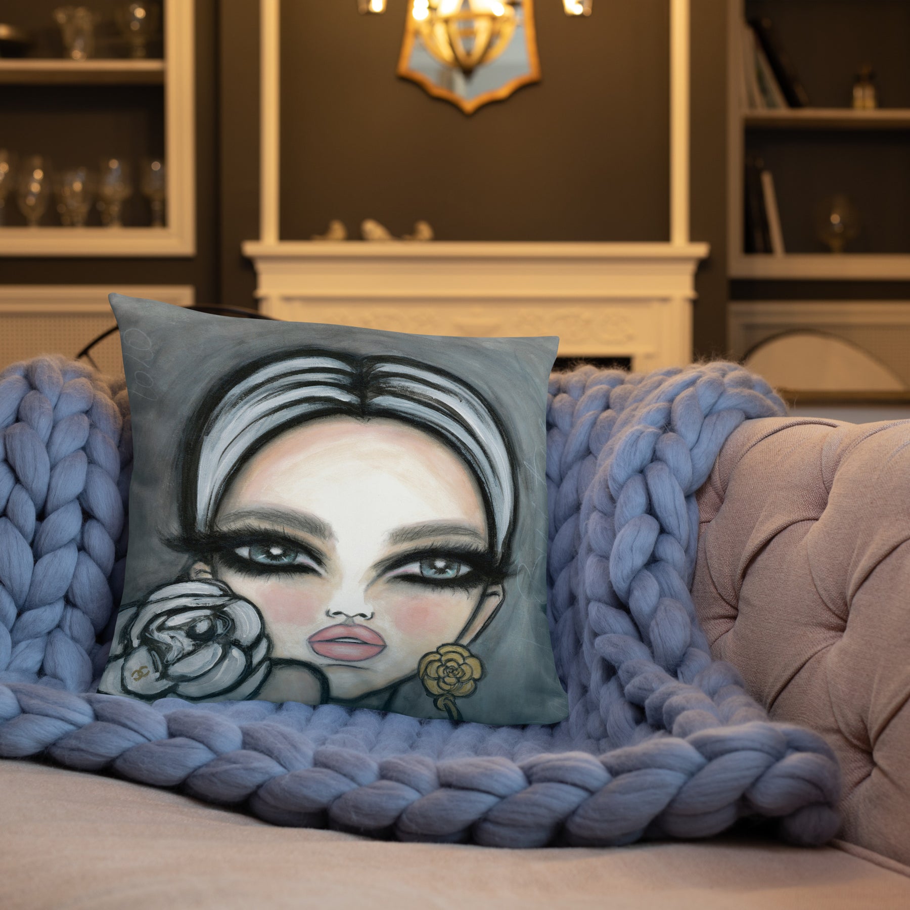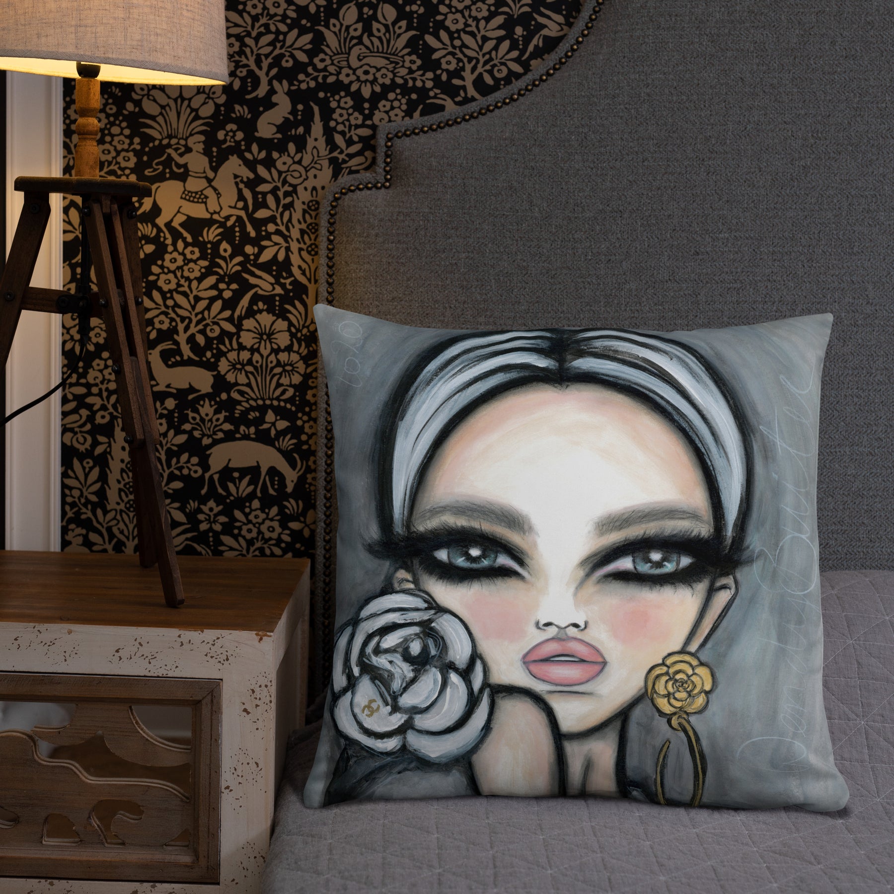 Front print is artwork Serene and back print is artwork Camélia Blanc.